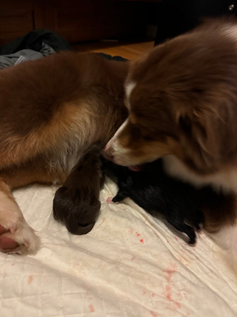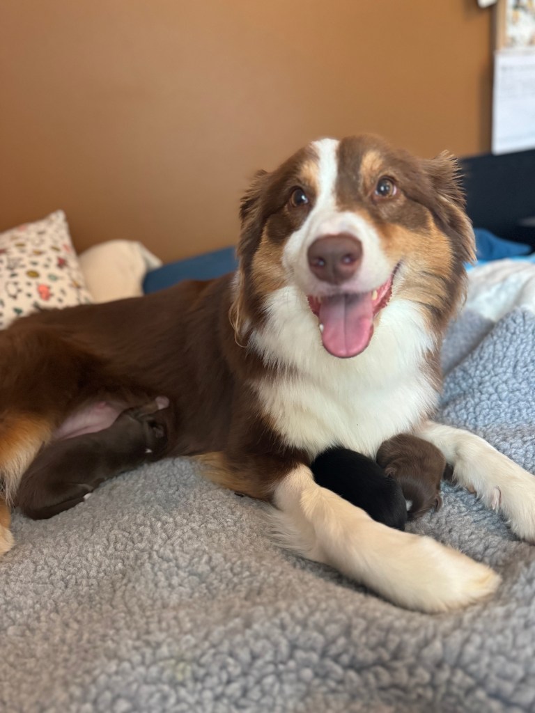 I have waited years to get to this event and it most definitely hasn’t disappointed. Breeding dogs has always been a dream of mine as I have always loved watching dogs work at a job they were bred to do. At first I wanted to breed border collies but after we got our first Aussie I knew then that they were the breed for me. Olive my first Aussie wasn’t the one I wanted to start with as I wanted to breed red Aussies. My next Aussie Terra only confirmed that this was the breed for me. Terra got me through some of the hardest times I have been through in my life and I might not be here if it weren’t for her. Terra remains by my side as my service dog and will have no litters of her own. This brings me to Chili the little red girl who has exceeded every one of my expectations and stolen my family’s hearts. Chili works like a dream but also has that wonderful off switch that is so desired in working dogs. Another wonderful things chili does is love my children fiercely. Henley taught chili to climb a ladder on the playground and go down the slide with her and she did all with no treats just purely the fact that Chili loves Henley. This week Chili whelped her first litter and I couldn’t be more proud of her! Chili has been not only an excellent mother but also so very patient with my children while allowing them to be a part of this experience. To say that I’m filled with joy is an understatement and I can’t wait to see what this new chapter will bring for my family. I also have to add every time I check on the puppies chili looks at me like loooook at my puppies (she is so proud of them).
