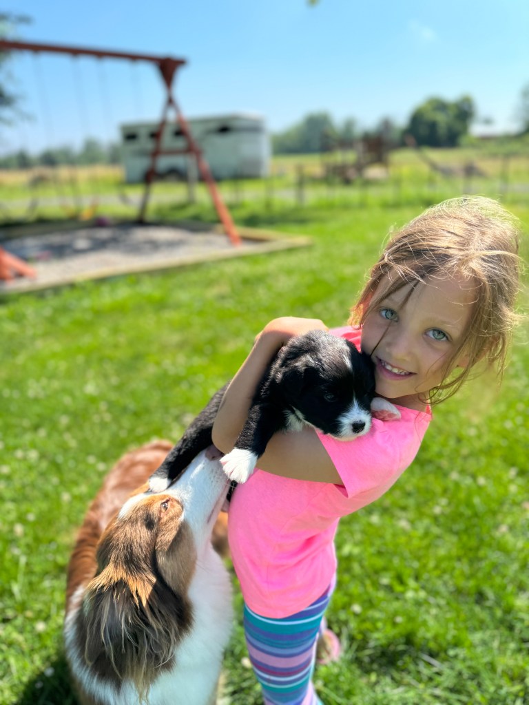 I cannot say enough good things about this dog. Chili loves my children fiercely and loves doing things with them. My oldest daughter (6yo at the time) helped get both chili’s novice and intermediate trick dog title which was a joy to watch as a mom. Chili also got her Canine Good Citizen and we are working on the next level AKC community canine. We started chili’s herding dog training and although it wasn’t her favorite thing she got the job done and obtained her started on ducks title with asca. After doing all of chili’s health testing we made the choice this spring to have her first litter. This experience has been so magical to be able to see a side of chili I hadn’t seen before and watch my children love on her puppies. I can’t wait to see what else Chili accomplishes!